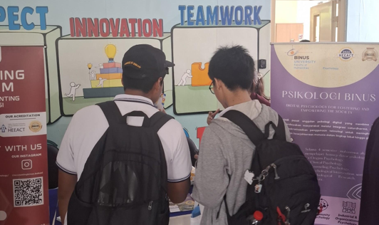 Kegiatan booth marketing jurusan Psikologi BINUS kali ini dilaksanakan di kampus BINUS @ Bekasi pada hari Sabtu, 29 November 2025. Booth kali ini sukses menarik perhatian banyak pengunjung lewat pendekatan yang fun, interaktif, dan pastinya relevan dengan dunia psikologi. Bukan hanya mengenalkan jurusan Psikologi secara umum, tim booth juga mengajak pengunjung merasakan langsung bagaimana konsep-konsep psikologi bekerja melalui tiga mini games seru: Guess the Color, Do You See What I See, dan Remember Me.